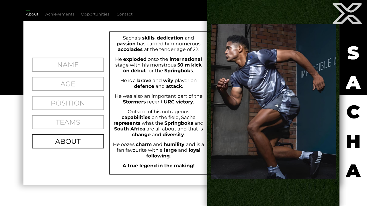 @Union Rugby, a rugby agency based in South Africa, approached me to assist with the creation of a professional sponsorship presentation for one of the talented players they represent. The primary goal of the presentation was to attract potential sponsorship opportunities by visually showcasing the player’s talents, achievements and marketability to brands and organisations.